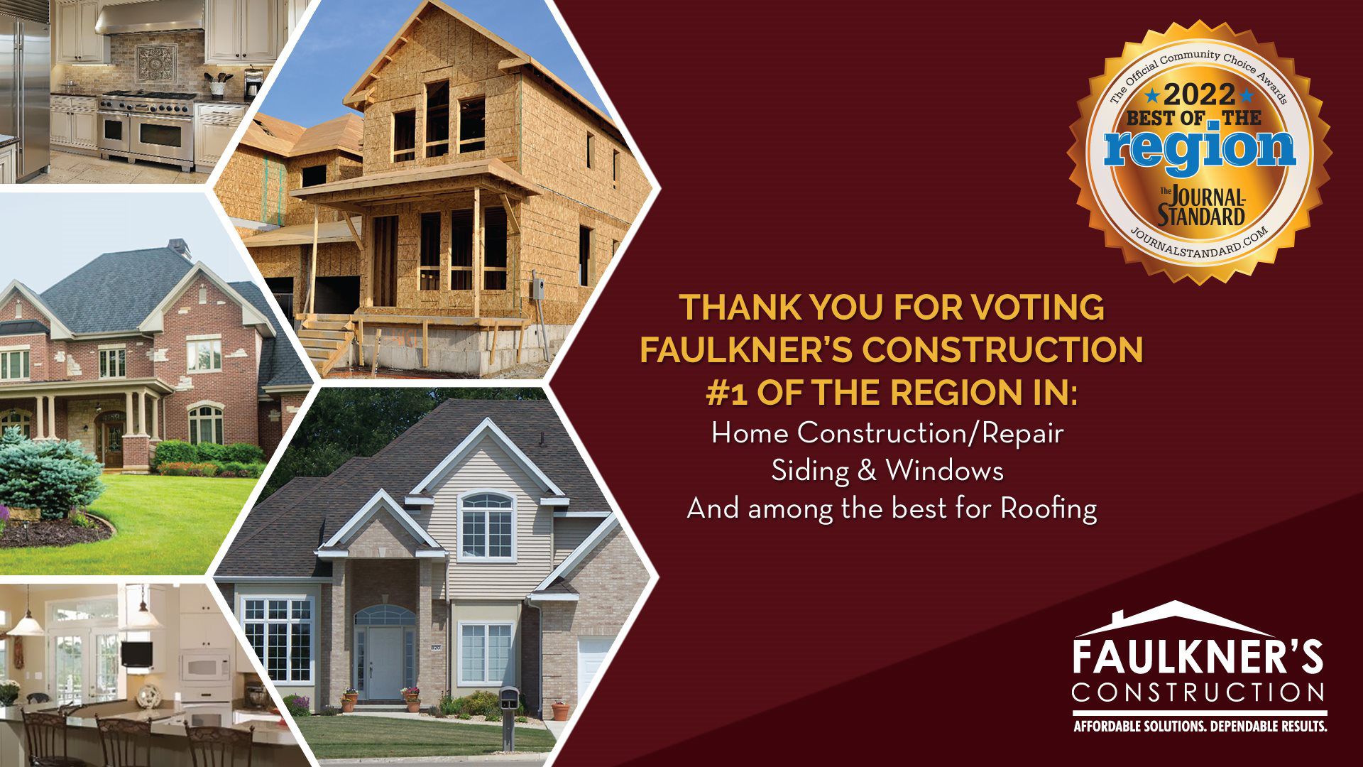 Best of Region 2012 – 2022 in Home Construction/Repair and Siding and Windows and among the best in Roofing.
